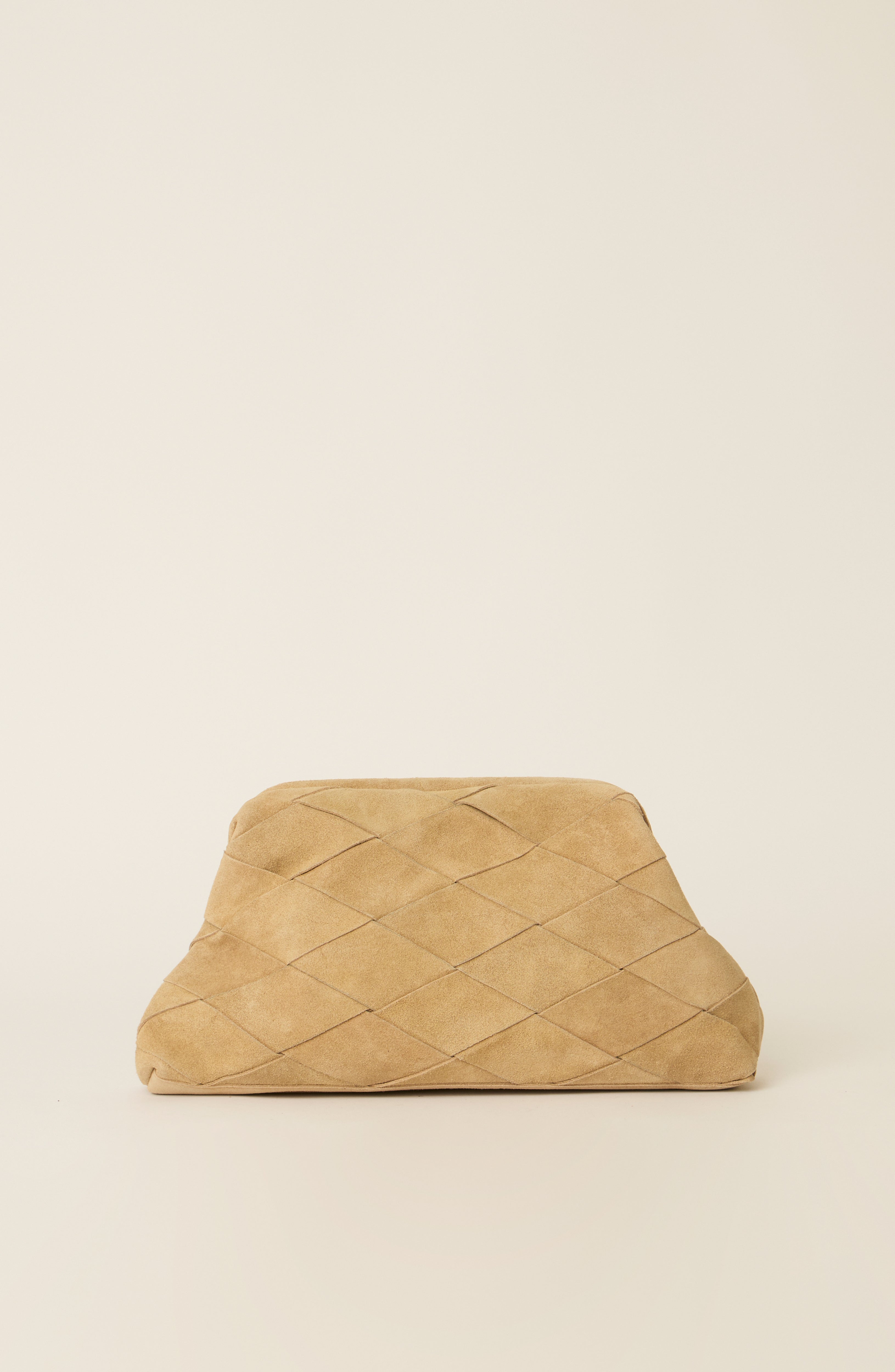 The Maylie Clutch is a refined statement piece crafted from soft, handwoven suede for a modern yet timeless look. This sculptural silhouette features a structured frame, magnetic closure, and smooth fabric lining for an elevated finish. Perfect for weddings, evenings out, or everyday sophistication, it pairs effortlessly with both casual and dressy looks.